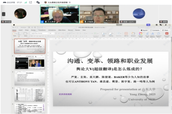 钟勇教授以“超级翻译”为核心,通过严复的案例探讨了传媒与翻译职业的发展路径,指出传统媒体面临严峻挑战,传媒从业者需拓展公关、市场营销等多元技能以适应全媒体时代变革,还特别以苏轼、莎士比亚等为例强调语言创新的重要性,说明语言不仅是工具,更是塑造思维和社会的力量。他提出“超级传媒工作者”应具备跨界能力和创新思维,并通过李子柒等案例阐释新媒体渠道的创造性与职业发展的可能性。结合AI时代背景,他建议传媒从业者掌握外语、培养批判思维、保持工作与生活的平衡,并始终以改变社会为志向。