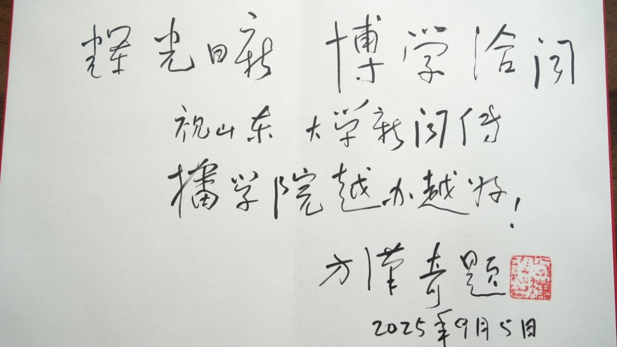 方先生亲笔为学院题词