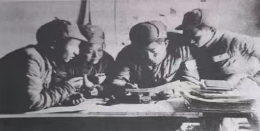 1946年春,大众日报记者编辑在临沂编辑部。左起第二位为包慧