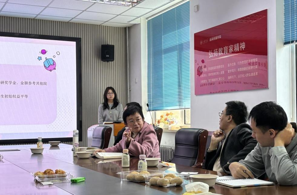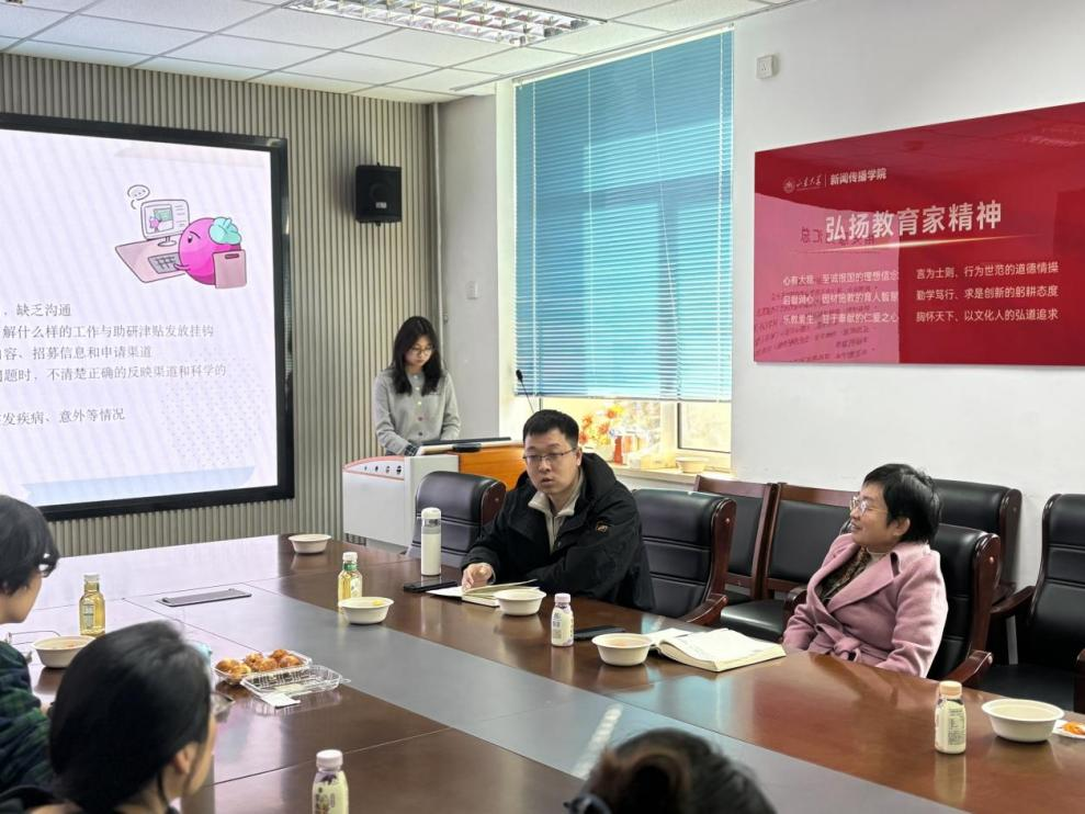 2025年11月14日,新闻传播学院举办“导学思政下午茶”活动,以“研究生奖助学金工作探讨”为核心主题,搭建师生深度沟通桥梁。活动围绕学院研究生奖助学金工作意见收集情况,聚焦制度完善方向与优化重点,切实回应学生关切。党委副书记王丽君主持活动,院长助理于智源及陈辉、韩恺、孙朝阳、刘畅等教师代表出席。各年级硕士生、博士生代表积极参与本次活动,充分表达对奖助学金工作的想法与建议。