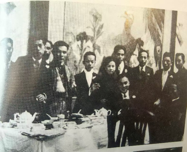 1930年代摄于香港,中间侧身者为章欣潮(右七)
