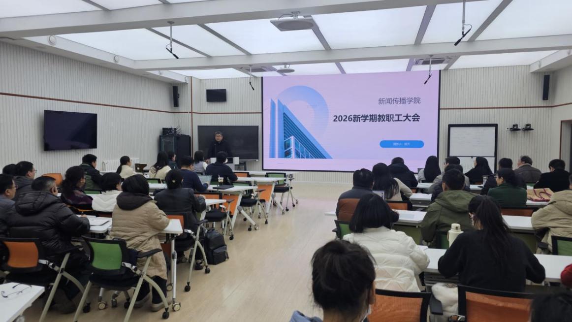 3月5日下午,新闻传播学院召开2026年春季学期全院教职工大会,传达学习学校新学期工作会议精神,部署学院2026年度重点工作任务,常务副院长倪万主持会议,全体教职工参加会议。