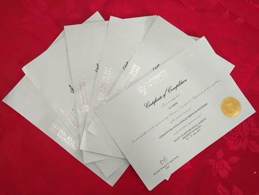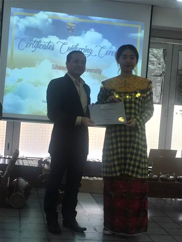 马来亚大学人文与社会科学学院院长Dr. Hanafi Bin Hussin:为我院学生姚丝雨颁发结业证书
