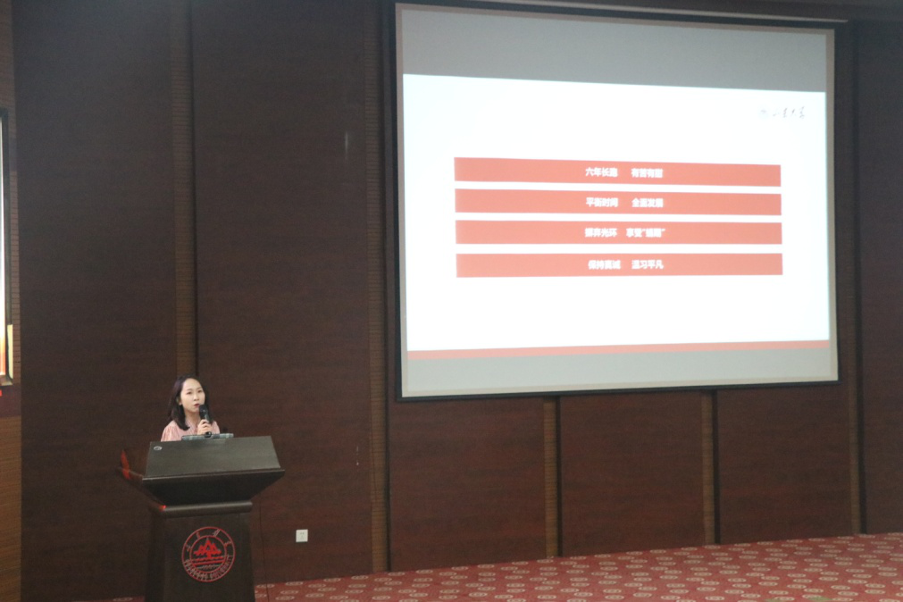 第四位学生代表是新闻传播学院研究生、国家奖学金获得者凌莉敏。凌莉敏以“回归平凡,再出发”为主题,与同学们分享了她七年山大时光的所感所悟。她强调学生应摒弃自身光环,脚踏实地,享受“蝴蝶化蛹”的平凡过程,回归平凡再出发,时刻保持一颗真诚、谦逊的初心。