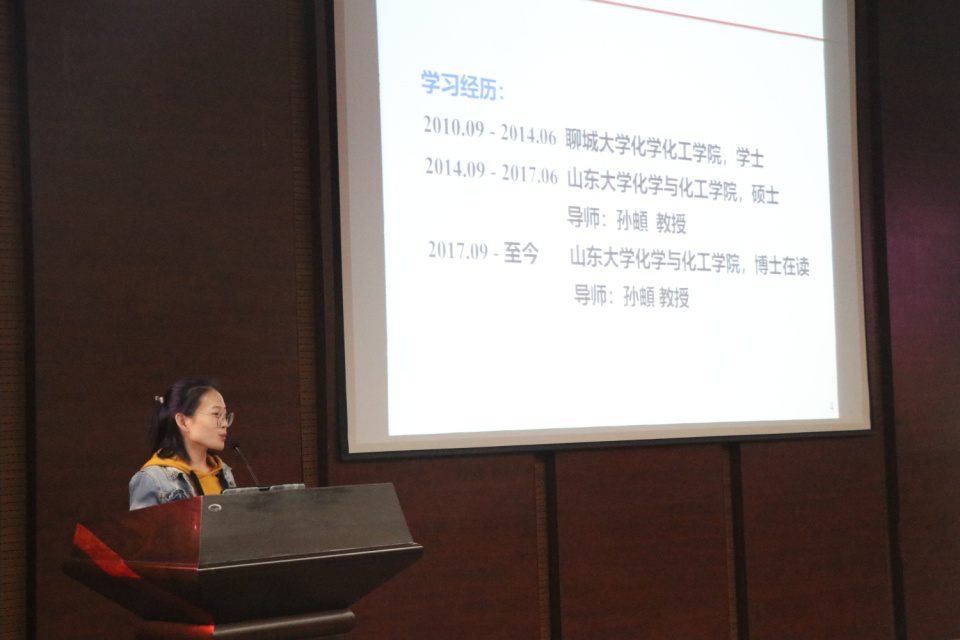 本次宣讲会由新闻传播学院2018级硕士生王祎楠主持,在简要介绍宣讲会背景后第一位学生代表化学与化工学院博士研究生、山东大学校长奖获得者王芝与同学们进行交流。王芝以过一个有意义的生活为主题,从自身学术研究成果引入,用自身在科研学习中的事例与大家探讨了寻找兴趣点、提高工作效率以及确定自身发展方向的重要性,鼓励大家在遇到困难与感到迷茫时不要放弃,找准自己的方向走下去。