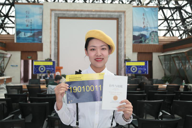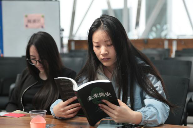正在北京实习的孙晓晨也赶来参加“阅读马拉松”活动。她是山东大学威海校区商学院的大四学生,主修金融学专业。平时爱看书的她,在山大北京校友微信群看到消息,第一时间在网上报了名。活动现场,她捧着一本《自卑与超越》的心理学书籍专心阅读。她说,毕业前选择来北京实习,希望能在北京找一份喜欢的工作。