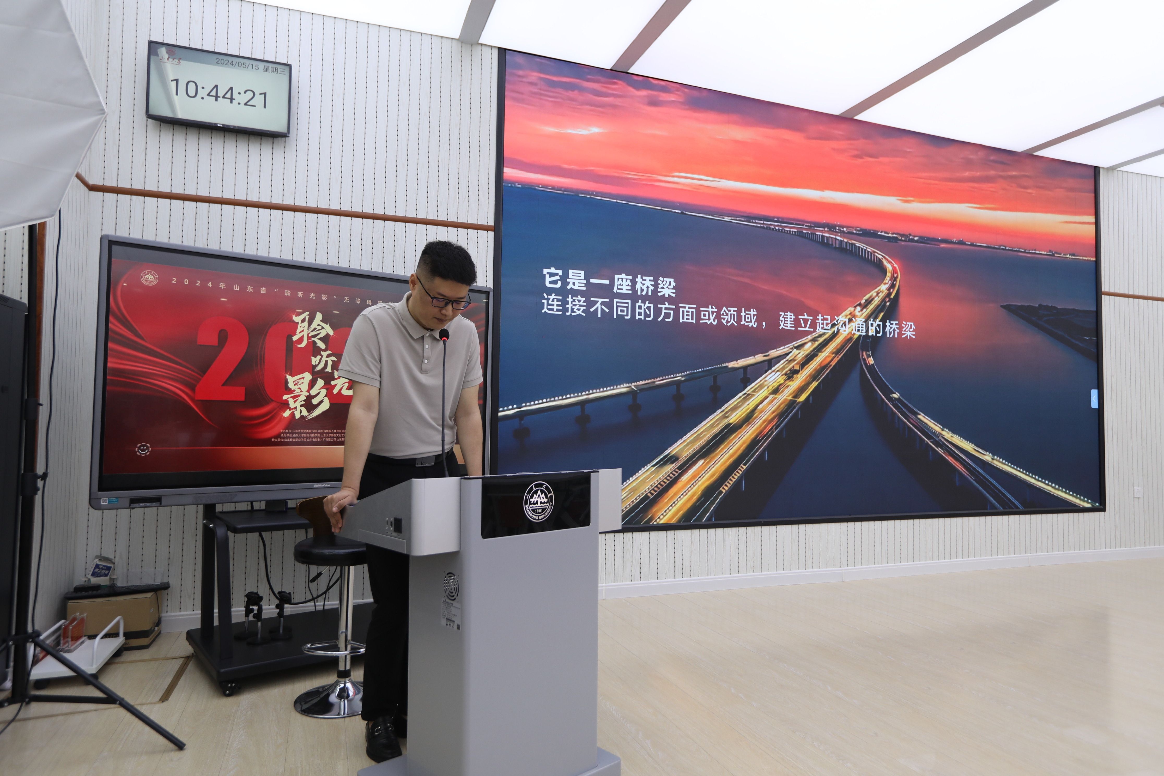 2024年5月15日,由山东大学党委宣传部、山东省残疾人联合会、山东省电影家协会联合主办的2024山东省“聆听光影”无障碍观影活动启动仪式在山东大学中心校区顺利举行。