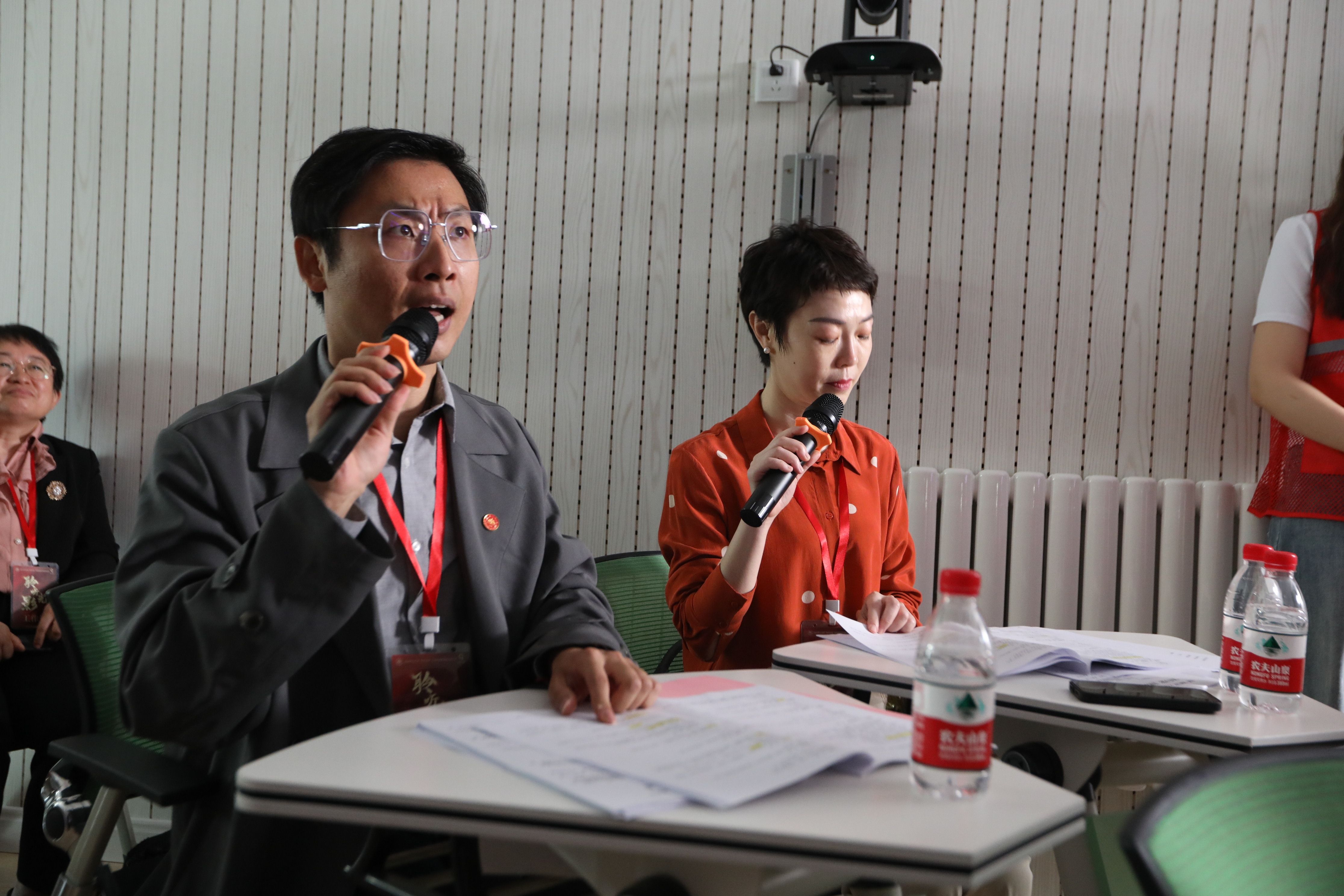 会议开始前,山东省残疾人联合会宣传文体部部长李英杰前来视察活动开展情况,并和“聆听光影”师生团队进行交流。