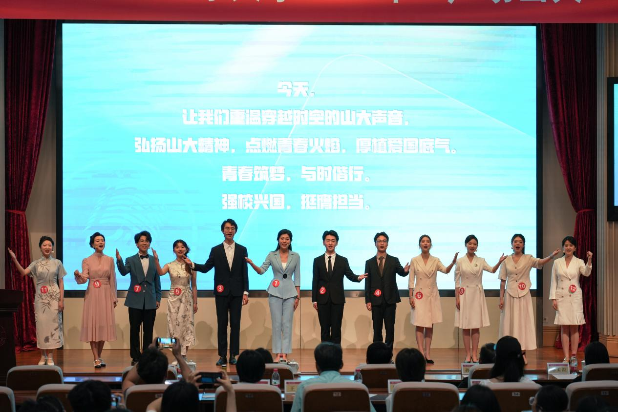 比赛伊始,全体选手以《回响·穿越时光的山大声音》朗诵节目开启了这场视听盛会。选手们激情饱满,声音激昂,以一腔热血演绎青年活力,发出了“用声音讲好山大故事,用实干传承五四精神”的呐喊。