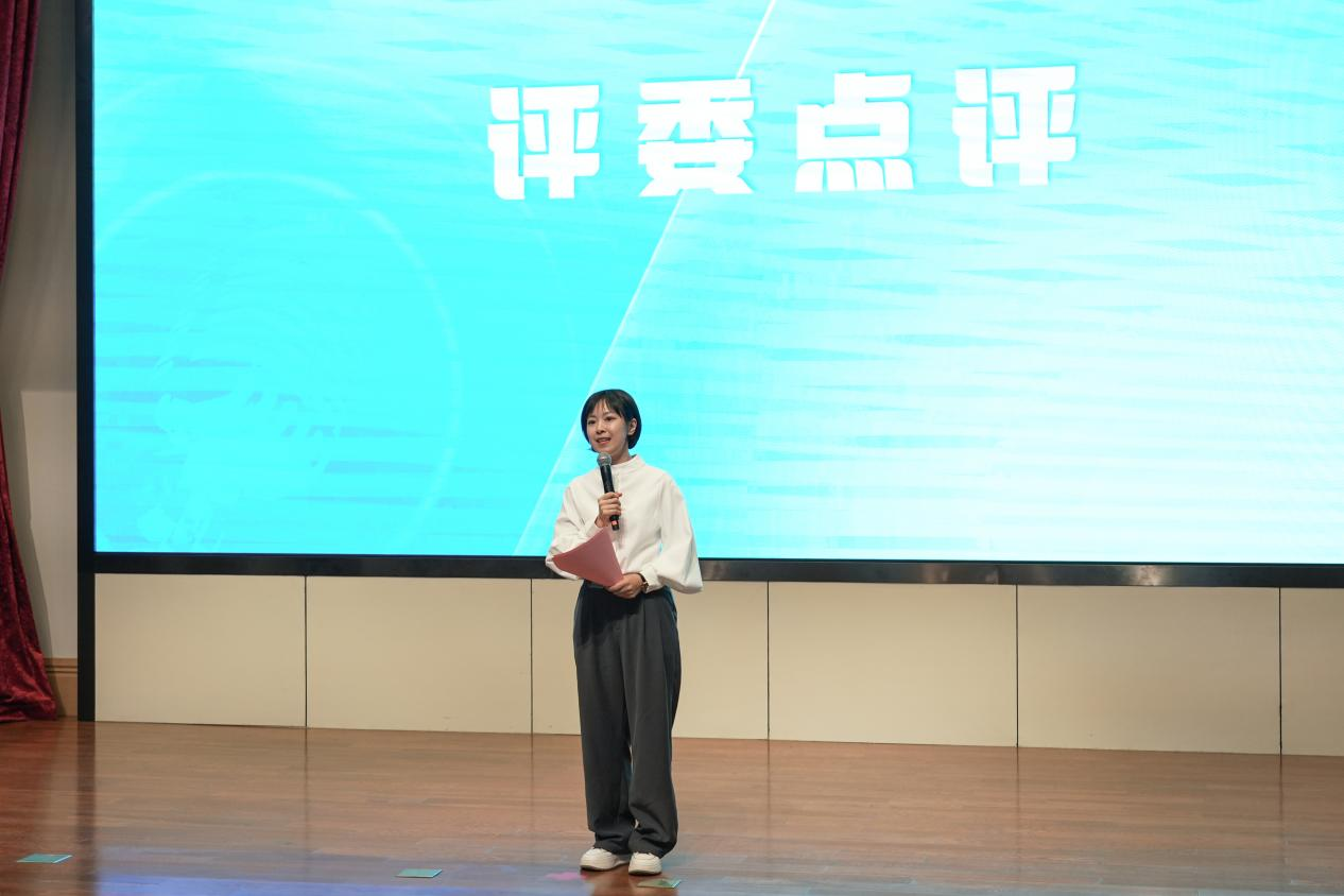 在所有选手展示完毕后,王蕃作为评委代表上台总结发言。她首先肯定了参赛选手们的精心准备和精彩表现,对选手们展现的山大学子和校园主持人的精神面貌给予了高度评价,并从专业的角度为选手们提出了建议和指导。此外,对于选手们的舞台表现,王番提出了三点期望:一是要有信念感。作为主持人,要先相信自己,坚定表达的信心,才能感染观众。二是要言之有物。主持需要紧扣主题,挖掘出材料中能被利用的闪光点,避免泛泛而谈。三是要学会讲故事。在对特定话题进行讲述时,可以从细微之处着手开辟独特视角、挖掘材料价值,以求达到“四两拨千斤”之效果。最后,王番希望“声动山大”能够成为山大的新的品牌活动,挖掘更多的优秀学子来讲述山大故事、传递山大声音。