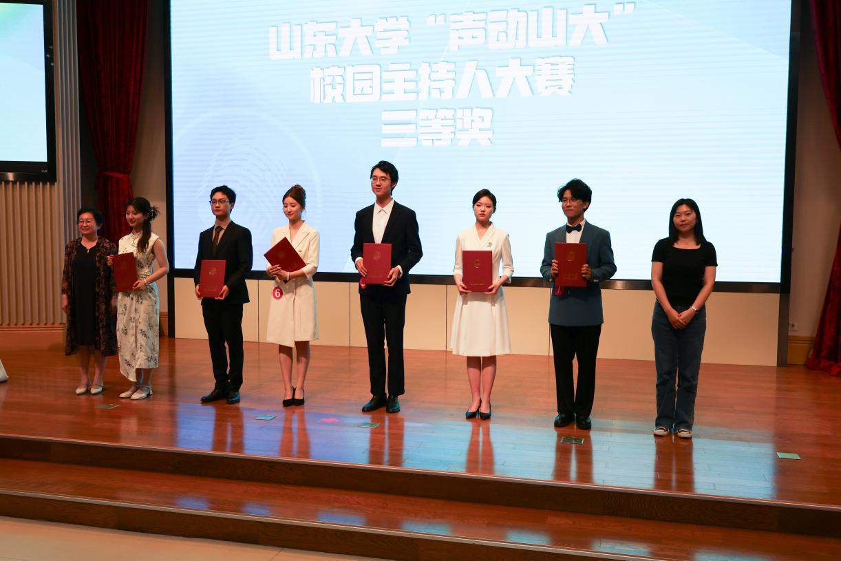 随着颁奖仪式的结束,山东大学首届“声动山大”校园主持人大赛圆满落幕。“以青春之我,创造青春之国家,青春之民族”,本次比赛的举行让我们看到了山大学子的青春活力和无限潜能。祝愿年轻的主持人们,在未来的日子里继续用一支话筒挥斥方遒,用一腔热血传递山大声音,为青春的篇章添上浓墨重彩的一笔。