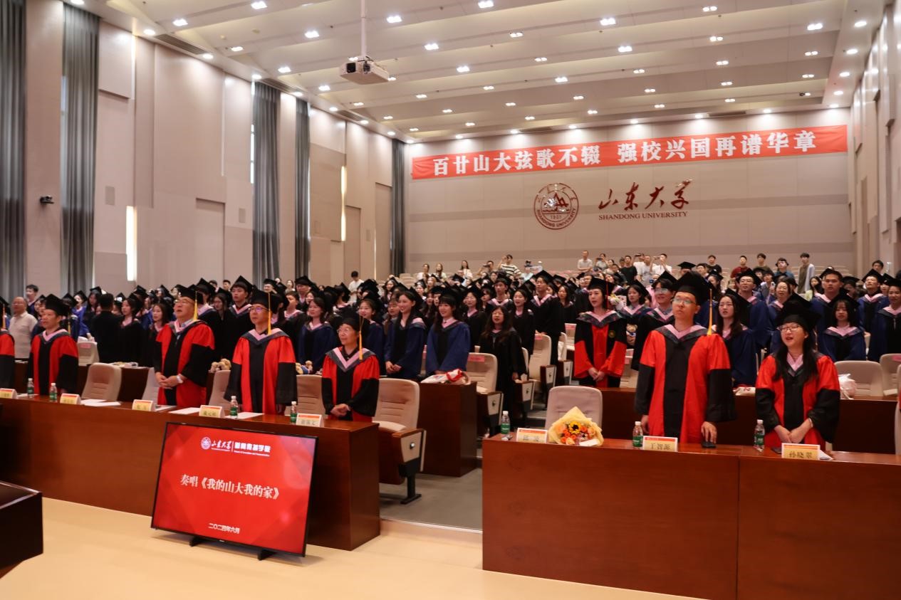 最后,全体毕业生唱响《我的山大我的家》。在悠扬的歌声中,新闻传播学院2024年毕业典礼暨学位授予仪式正式落下帷幕。