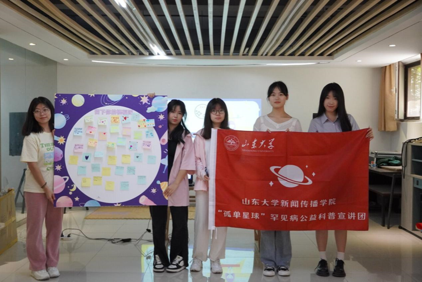 7月18日,山东大学新闻传播学院“孤单星球”罕见病公益科普宣讲团在济南市历城区山大路街道区直东社区针对少年儿童开展了一场罕见病科普宣讲活动。本次宣讲活动以“让罕见被看见”为主题,通过科普教育和互动游戏,增强孩子们对罕见病的认识和健康意识,提高共情能力,减少其对罕见病的刻板印象,从而改善罕见病患者的社会生存状况。为了便于孩子们深入理解罕见病宣讲的主题和内容,宣讲活动巧妙构建星际旅行情境,将罕见病患者隐喻为宇宙一隅的“孤单星球”居民,这也对应着他们在现实社会中鲜被关注的社会处境。