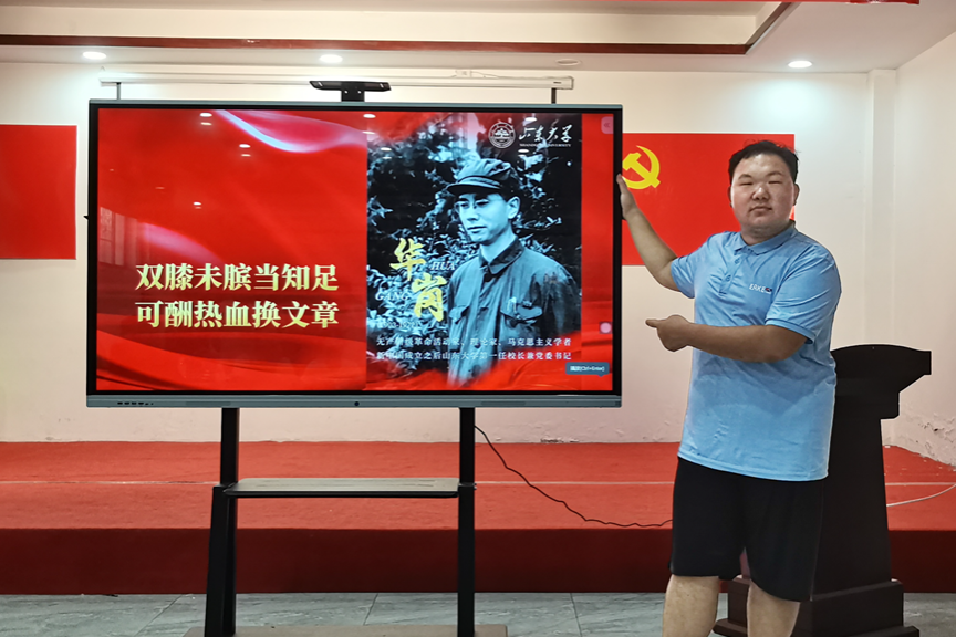 此外,调研团成员还分别赴各地宣传华岗事迹、播撒红色种子。团队成员尹天佑走进山东省沂南县“手牵手圆梦行动”夏令营,为孩子们讲述华岗的红色事迹。华岗的故事激励着在场的每一位孩子,让大家深刻感受到革命先烈的坚定信仰与不懈追求。通过生动的讲述,孩子们仿佛穿越时空,与华岗先生进行了一场心灵的对话,更加坚定了努力学习、报效祖国的信念。