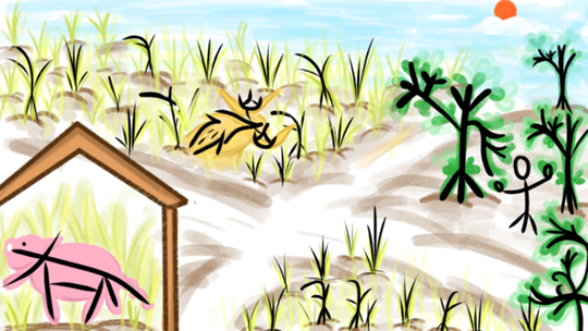 图为支教过程中甲骨文画创作