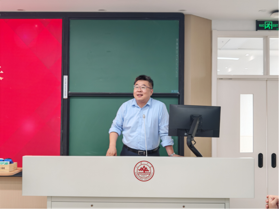 最后,倪万做出总结致辞并讲授开学第一课。倪万按照“学院学科发展——培养什么样的人才——对新生的期望”的线索展开讲述。他纵向阐述学院学科发展脉络,突出强调2016年建院对当下建设的关键意义、山大新闻教育的红色历史底蕴和山大新传起步晚但发展迅速的特点。倪万指出,山东大学新闻传播学院教育建设水平近年来实现了历史性新飞跃,学科实力雄厚并持续蓬勃发展,号召新生继往开来,向更高水平迈进。此外,倪万针对国家战略、时代变化、产业要求三个方面明确了新闻学的学科定位,并祝愿新生拥有美好的未来。