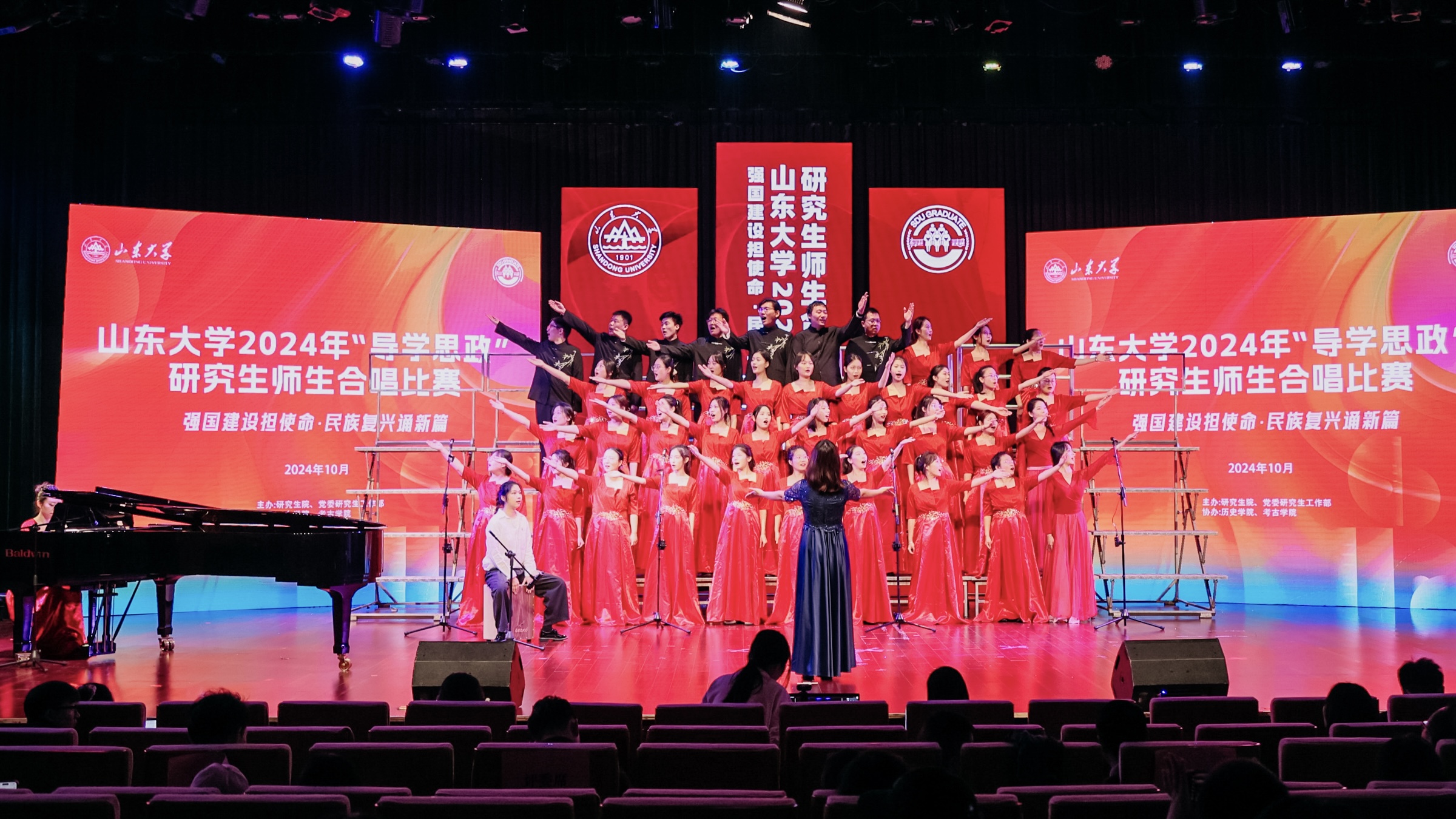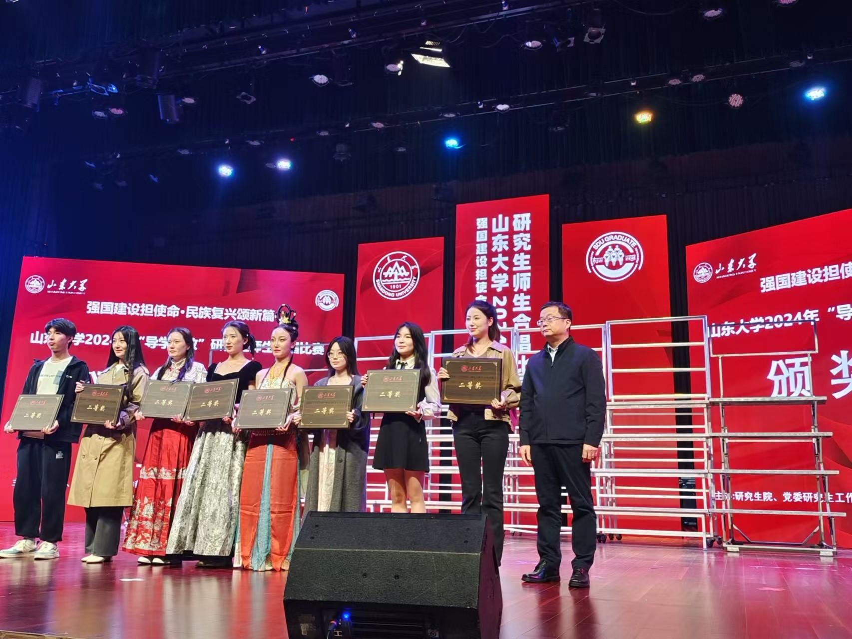 2024年10月26日下午,山东大学2024年研究生“导学思政”合唱比赛于山东大学音乐厅举行,新闻传播学院获得二等奖。