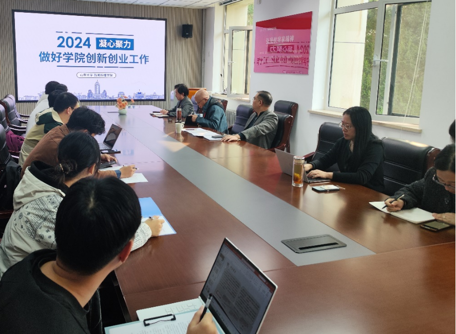 党委副书记王丽君汇报了学院学生创新创业工作的整体开展情况。她从国家学校相关政策要求入手,总结了学院创新创业工作的相关经验,指出创新创业工作目前存在着评价体系激励程度不够、经费不足和教师学术项目转化较少等问题,并提出了进一步推进工作的建议。