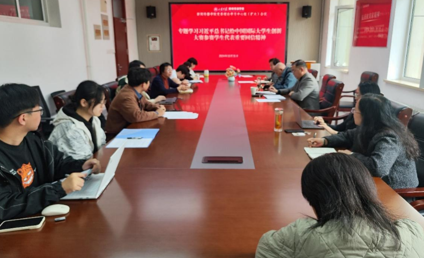 10月31日上午,新闻传播学院召开党委理论学习中心组(扩大)会议,专题学习习近平总书记给中国国际大学生创新大赛参赛学生代表重要回信精神。学院党委书记孙宜山主持会议。