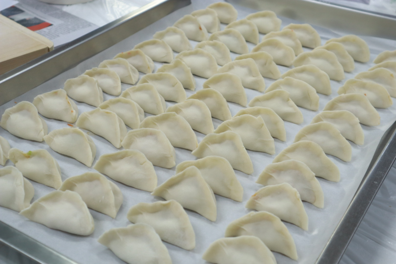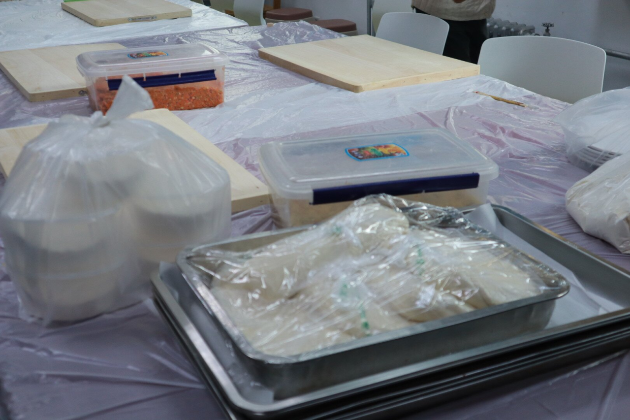 走进活动现场,映入眼帘的是工作人员提前准备好的面团馅料和相关工具。洁白如雪的面粉、柔软筋道的面团以及用新鲜蔬菜、猪肉调制而成的饺子馅,整齐地排列在案头,静静地等待着同学们大展身手。