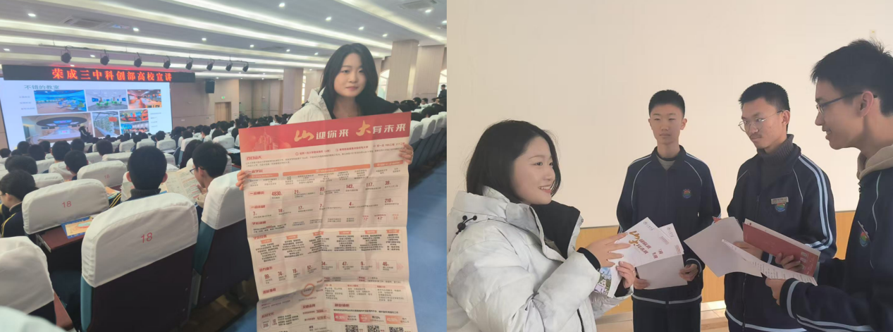 为深入贯彻落实山东大学关于加强与中学交流合作的重要举措,进一步密切校际联系,1 月 19 日与 1 月 21 日,山东大学新闻传播学院“沂起来山大”母校回访宣讲团成员梁佳分别前往荣成市第三中学和荣成市第一中学开展宣讲活动。此次宣讲旨在全方位、深层次地传播山东大学“为天下储人才,为国家图富强” 的精神内核,激励更多优秀学子树立远大理想,追逐学术梦想。