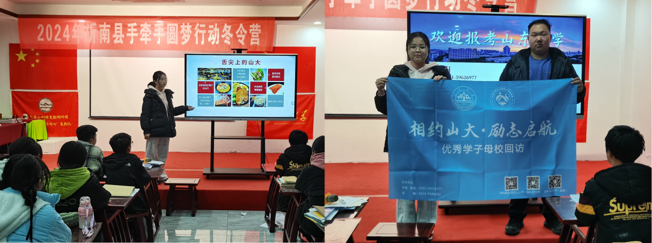 为展示山大学子的优秀风采,宣传山东大学招生培养政策,1月20日至21日,新闻传播学院“沂起来山大”母校回访宣讲团(山东省080队)联合山东省217队、山东省269队等在山东省沂南县开展母校回访宣讲活动。