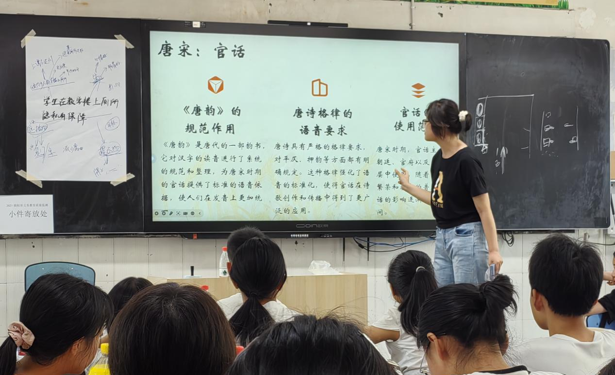 基于调研结果,志愿者精心设计了推普课程。课堂上,志愿者结合党的二十届三中全会精神,阐释文化传承从保护到创新的升级路径,并强调当代中学生肩负着用普通话讲好中国故事的使命。