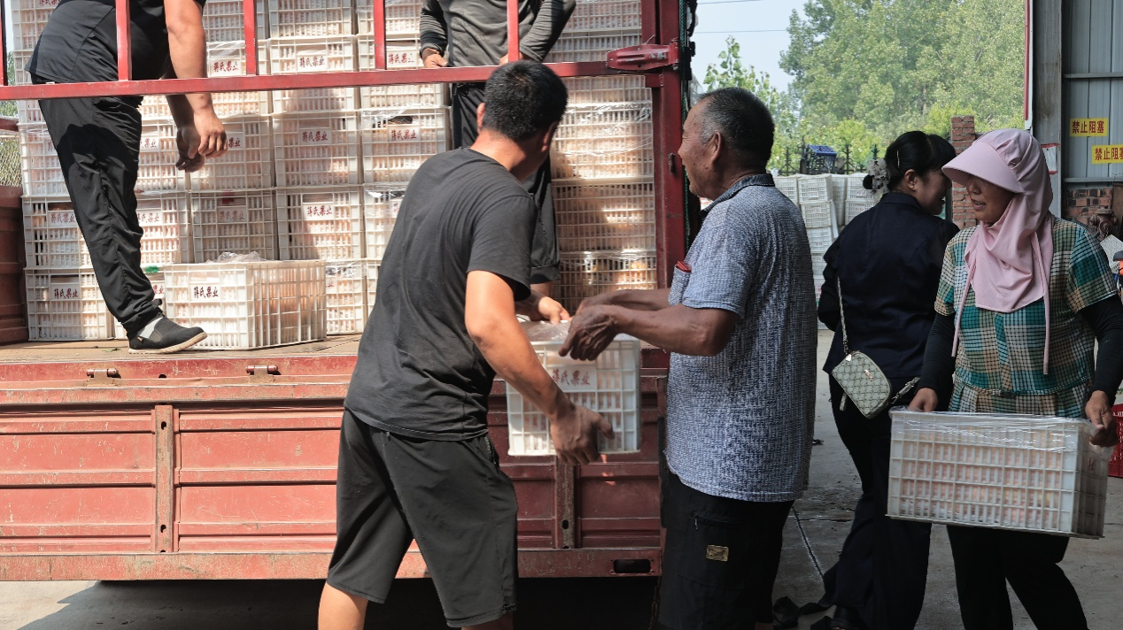 7月19日,实践团队随当地桃农深入桃林与大棚开展实地调研。清晨,队员们与桃农一同采摘带露的黄油蟠桃,随后参与分拣、包装及售卖全流程,用镜头记录蒙阴蜜桃从田间到市场的完整链条。通过与桃农的交流,成员们了解其种植与销售的过程与经验,以及大棚种桃的历史与现状。