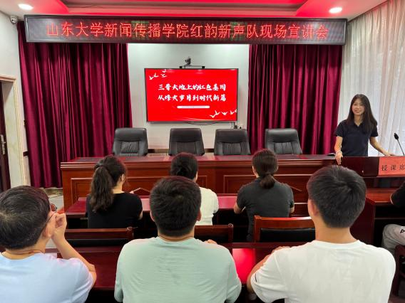 2025年8月8日,山东大学新闻传播学院红韵新声队走进山西省大同市浑源县,在社区服务中心面向当地党员干部和社区居民开展了《三晋大地上的红色基因:从烽火岁月到时代新篇》主题宣讲活动。此次活动旨在深入挖掘和传承山西深厚的红色文化底蕴,引导广大干部及群众从革命历史中汲取精神力量,投身新时代发展实践。