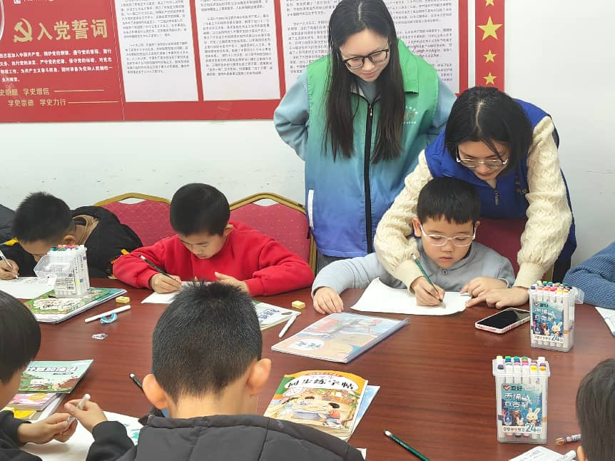 当日9点左右,珑岸社区临时教室内便暖意融融、气氛热烈。十几名来自社区的一至六年级的小朋友在家长陪同下陆续到场,与支教队员们亲切交流,好奇地询问课程内容与校园生活。家长们对社区与支教团联合开展的公益托管服务表示由衷感谢,现场洋溢着轻松愉悦的氛围。