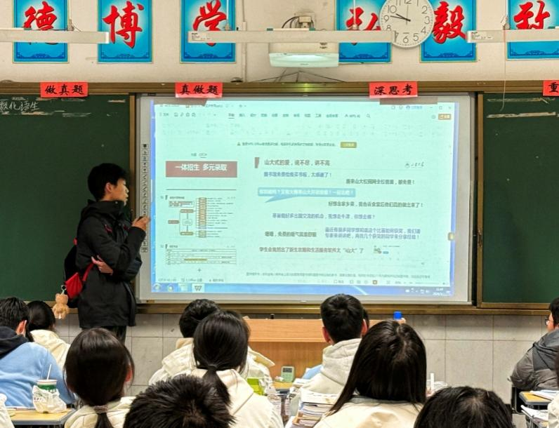 宣讲团前期进行了充分筹备,结合宜春中学的办学特色和高一学子的学业阶段特点,精心打磨宣讲内容,反复演练流程,确保分享内容的针对性与实用性。他们在系统梳理山大的百年校史、学科实力与招生政策的基础上,还融入了自己生动的校园生活体验与实用的备考经验,希望借此为学弟学妹们搭建起一座通往理想学府的桥梁。