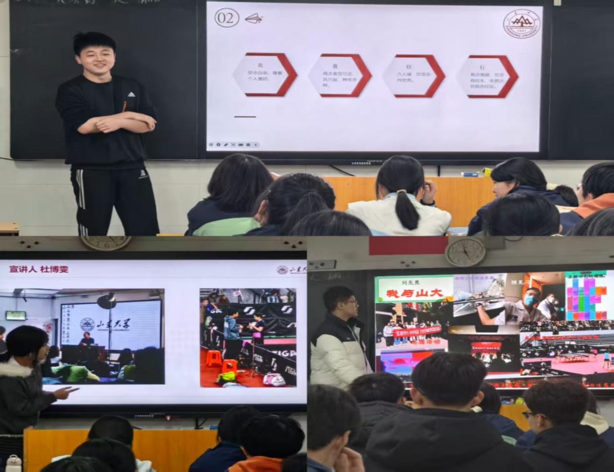 宣讲伊始,寇晓炜同学以热情洋溢的开场白拉开了活动序幕。她结合山东大学“一校三地”的办学格局,向学弟学妹们介绍了学校的悠久历史与深厚底蕴。从1901年创办的山东大学堂,到今天发展成为学科齐全、实力雄厚的高水平研究型大学,百廿山大的峥嵘岁月让在场同学深感震撼。