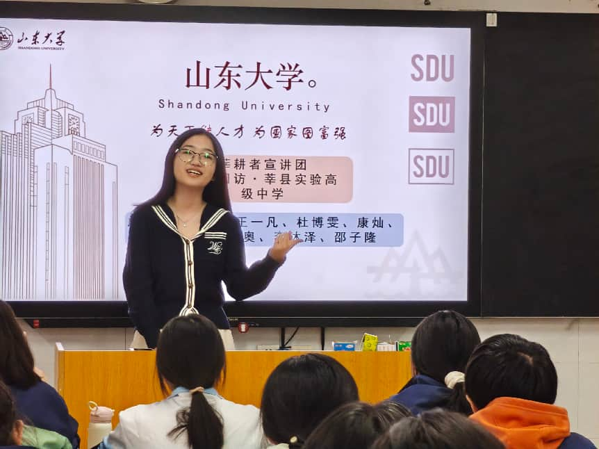 为全面展现山东大学的办学实力与育人成果,深化山东大学与重点中学的交流沟通、助力高中学子明晰升学方向、树立成才目标,2月23日,山东大学新闻传播学院莘耕者队走进母校莘县实验高级中学,面向高三学子开展主题宣讲活动。本次活动以“百廿山大,浩然育贤”为主题,立足山大“为天下储人才,为国家图富强”的办学宗旨,系统展示了山东大学的办学特色与育人体系,激励了更多优秀学子筑梦山大。