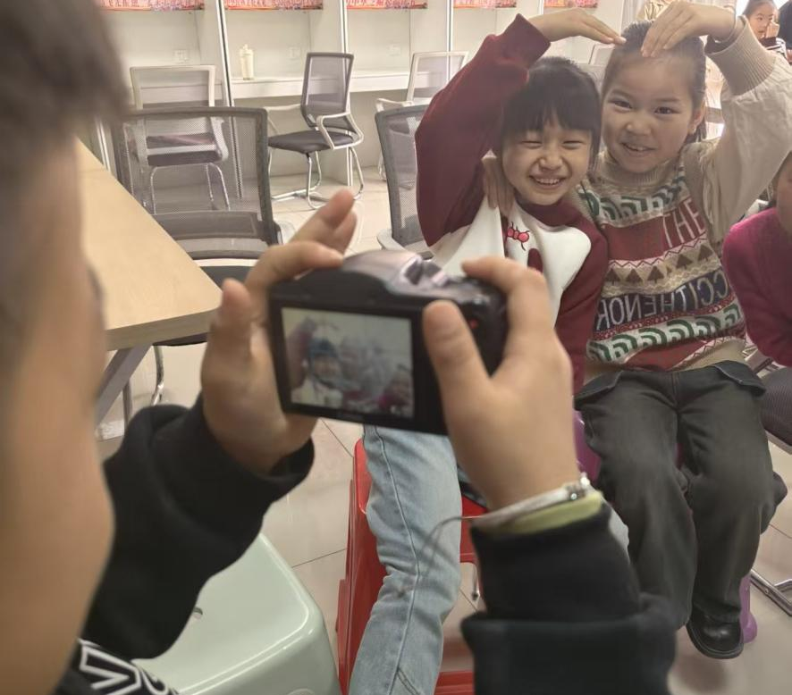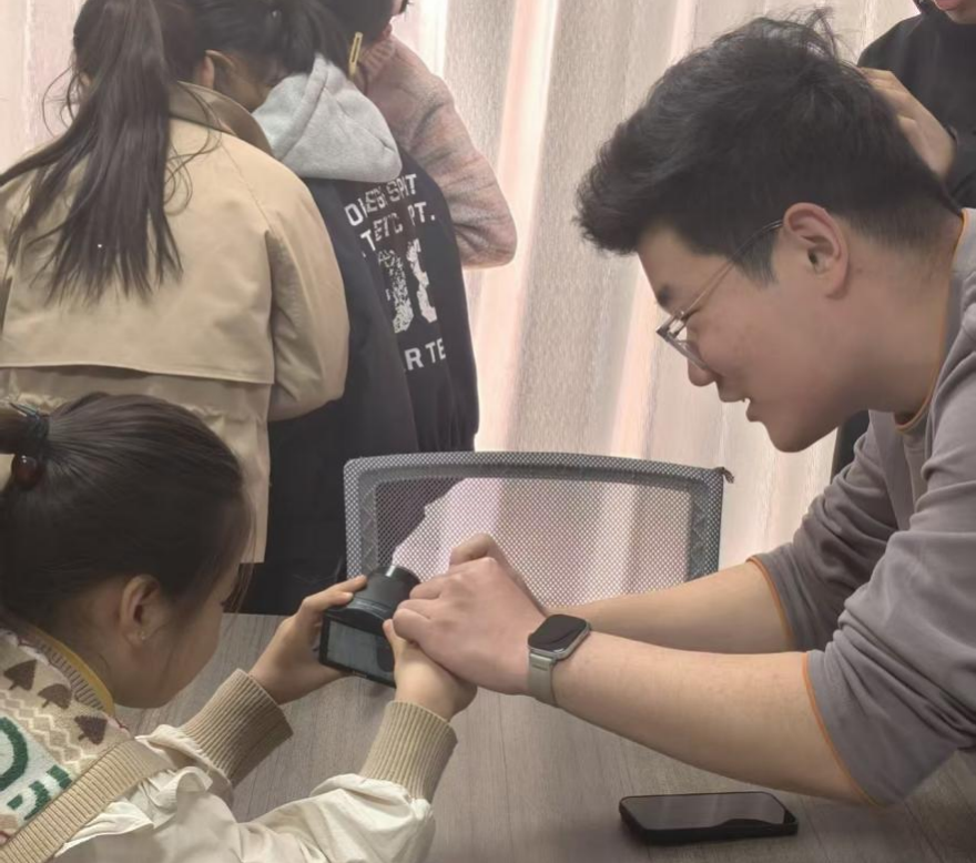 午后的“爱心小屋”,是探索与创造的天地,更是童心与热爱的主场。实践所为孩子们量身打造了科技启蒙、艺术疗愈与体育拓展三大板块课程,全程筑牢安全底线,让孩子们在快乐中收获成长。在“小摄影家:一双发现美的眼睛——相机使用教学与实景实操”课上,队员从基础按键操作、光影构图技巧讲起,手把手带着孩子们捕捉窗外的春光、伙伴的笑脸、小屋的温暖瞬间,让孩子们学会用镜头定格生活里的小美好;在无人机模拟飞行体验中,团队提前划定专属安全区域、制定全流程安全规范,一对一全程陪护操作,让孩子们在绝对安全的环境里感受科技的魅力,在心中种下探索未知、拥抱世界的种子。