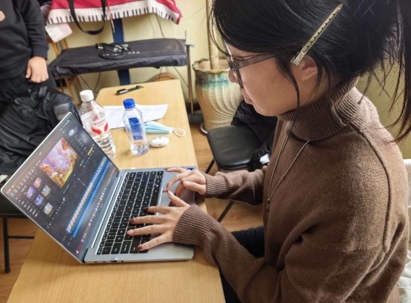 团队队长李金一,在山东省威海市乳山市融媒体中心参与实习。寒假伊始,她积极投入到乳山市春节联欢晚会的工作之中,出演大学生情景剧《热烈的少年》并担任副导演,同时协助领导出色完成乳山市少儿春晚、首届融媒体开放日研学活动等工作,并在工作收尾阶段导演拍摄微纪录片《青鸟归巢》,展现乳山市返乡大学生的精神风貌。其成果不仅获得了共青团乳山市委的认可,还于“乳山发布”视频号、“母爱圣地 美好乳山”抖音号上发布,得到广泛赞誉。
