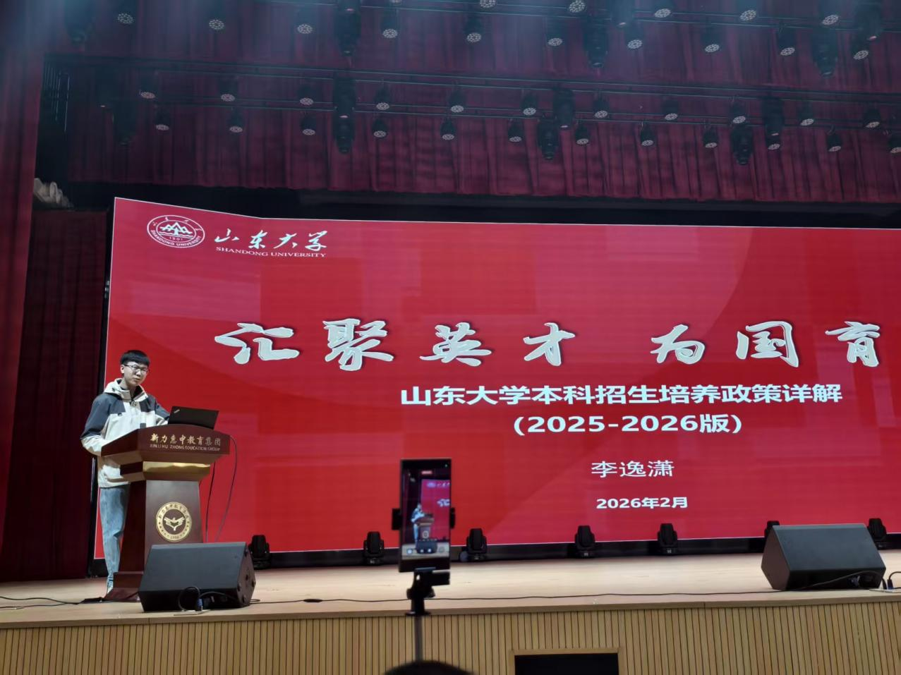 2月7日下午,李逸潇作为山东大学“山声传晋”宣讲团成员之一,于太谷新力惠中学校大会堂进行返校宣讲。