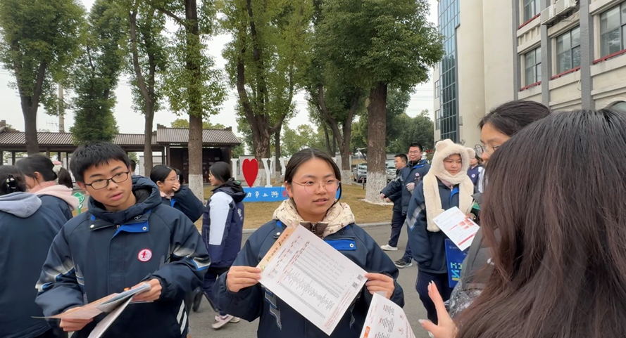 宣讲会后的现场摊位咨询区,成为校园里的热门打卡点。小队成员分工协作,为来往学子发放宣传资料,面对面耐心答疑解惑。针对“山大不同校区的专业分布”“湖南考生录取位次”“具体专业学习情况”等高校报考问题,以及“高三最后阶段高效刷题方法”“志愿填报避坑技巧”等备考升学疑问,队员们结合自己的高中奋斗经历与山大学习体悟,逐一给出具体且实用的建议,现场交流氛围热烈,学子纷纷前来咨询,收获满满。