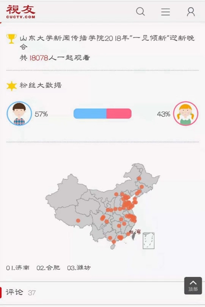 值得一提的是,本届新闻传播学院迎新晚会延续往年风格,温情、感动而不失青春活泼。但在晚会呈现技术上进行了新的创新突破,现场微信互动墙妙趣横生,贯穿于节目中的抽奖环节也是赚足了观众眼球,在为观众们呈现一场视听盛宴的同时,也竭尽所能为同学们送上了来自新闻传播学院的福利与祝福。同时,晚会开通了视频直播渠道,吸引近两万人在线观看,覆盖全国大多数省市,为天南海北的新传学子与广大校友提供了回归母校的线上桥梁。