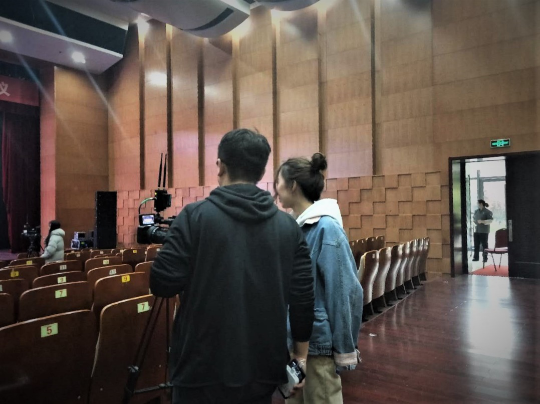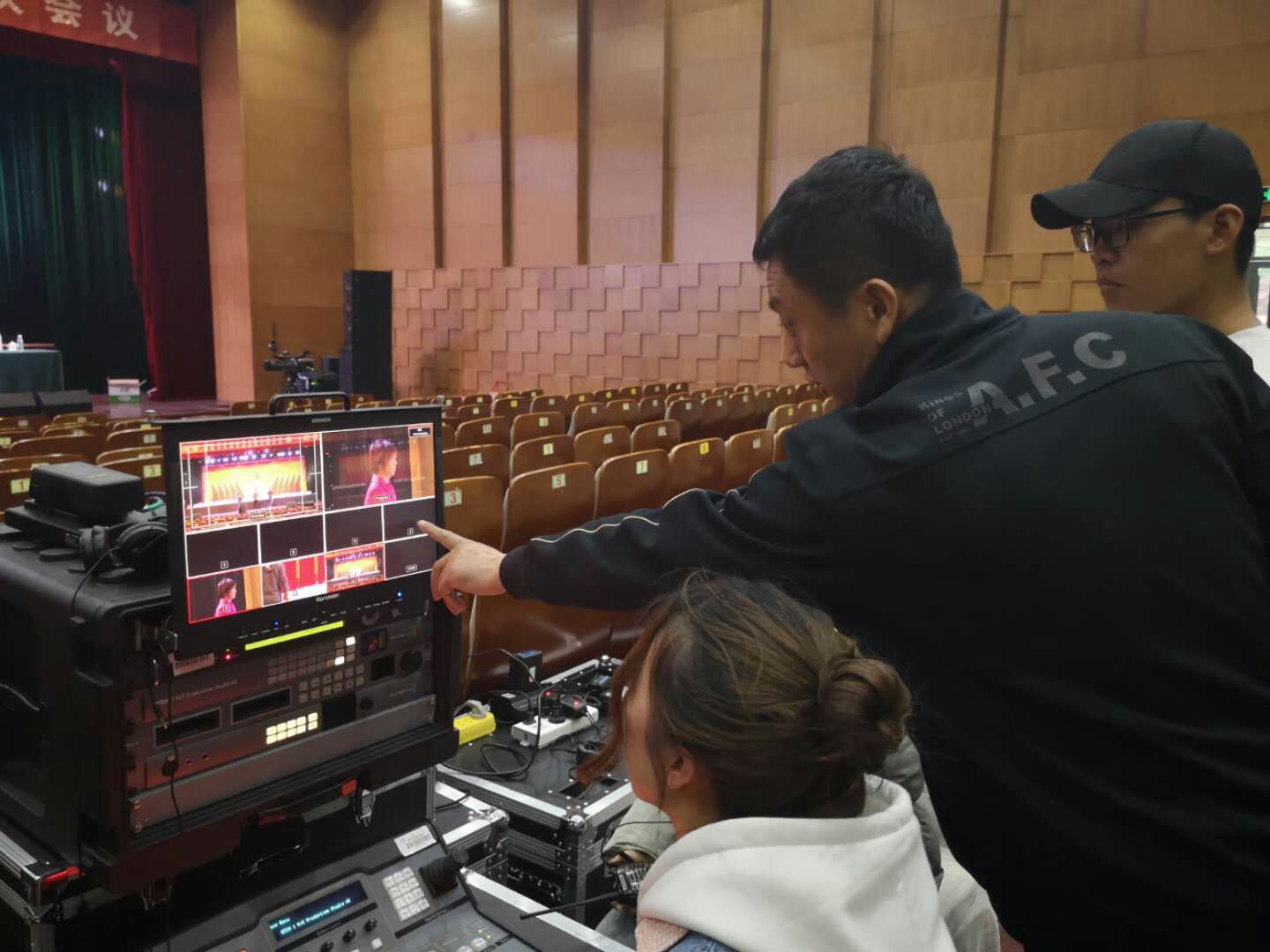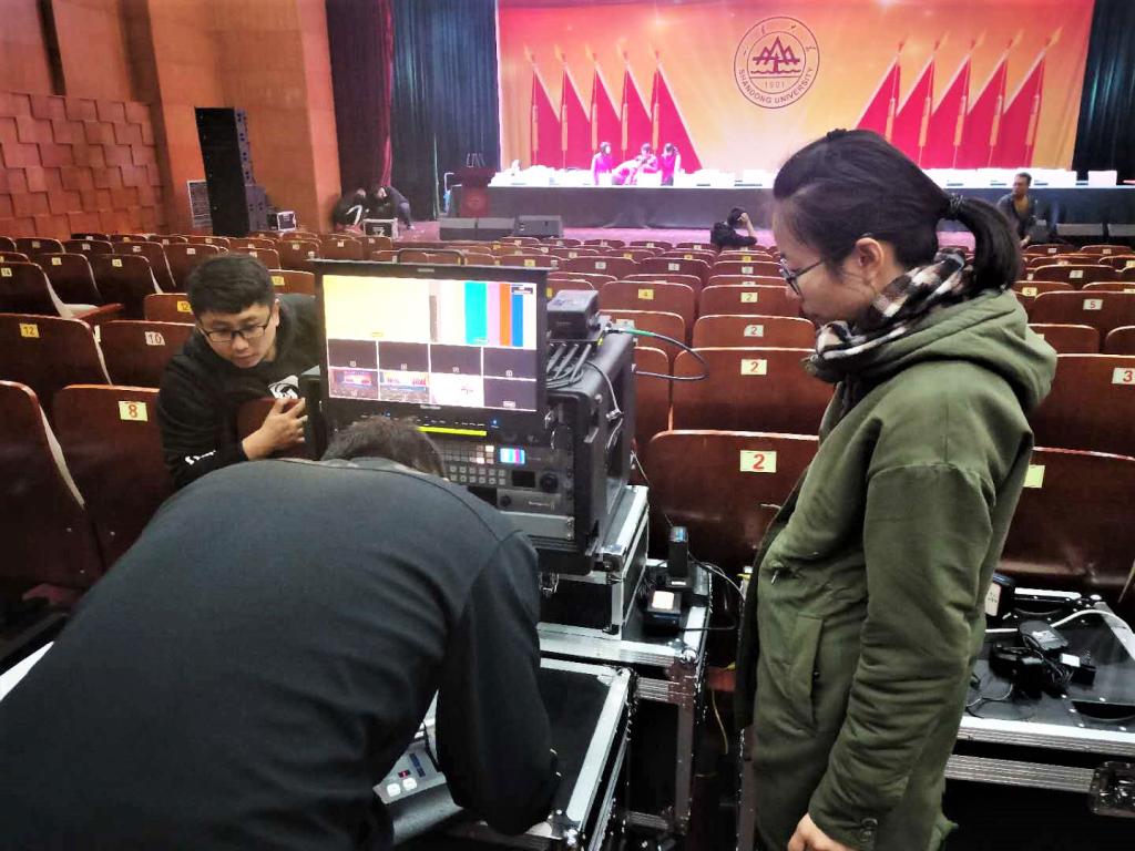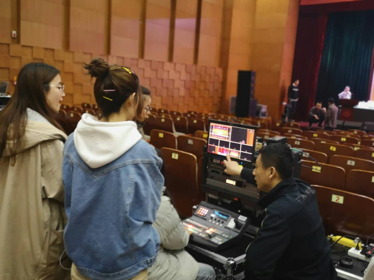 4月27日下午两点半,山东大学影视协会的同学们来到科学会堂展开模拟录播练习。此次模拟导播参与老师同学共9人,参与同学们分组互换模拟实践,由山东大学广播电视台教师郭坦、徐迎春指导教学。