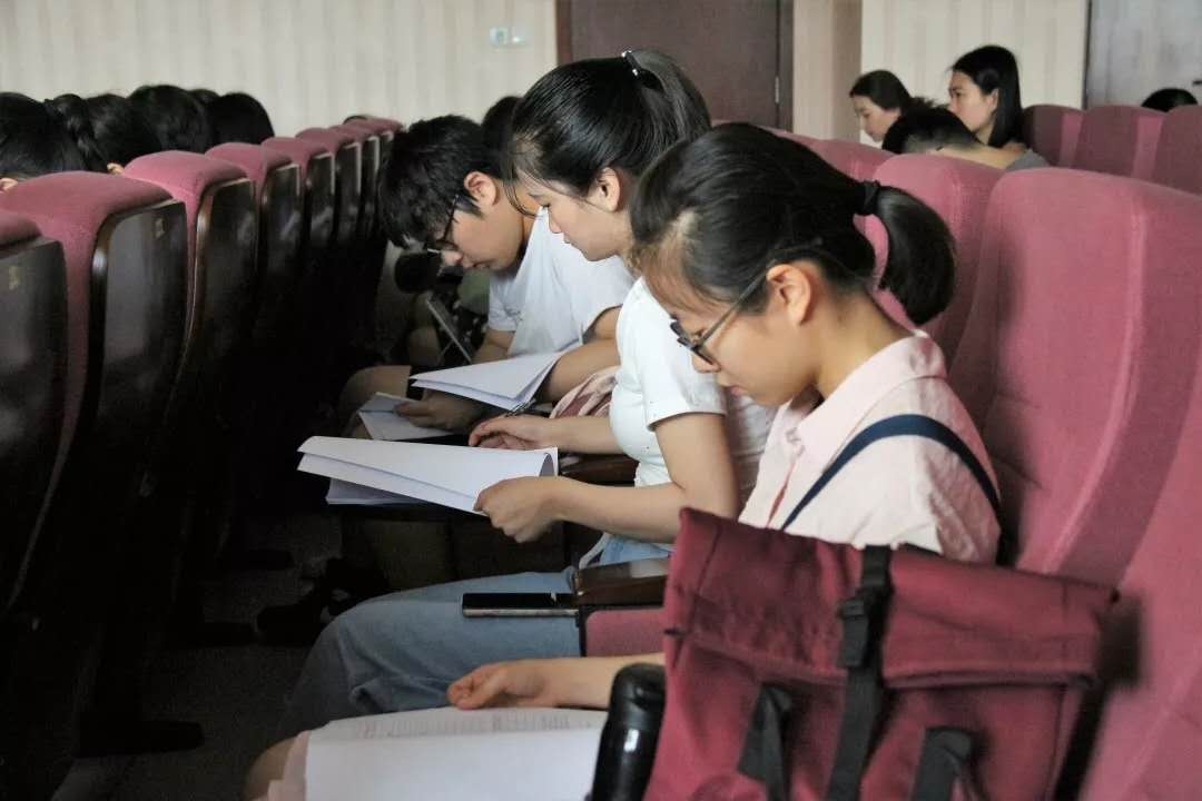学生代表们审议文件