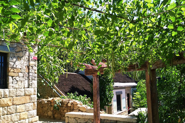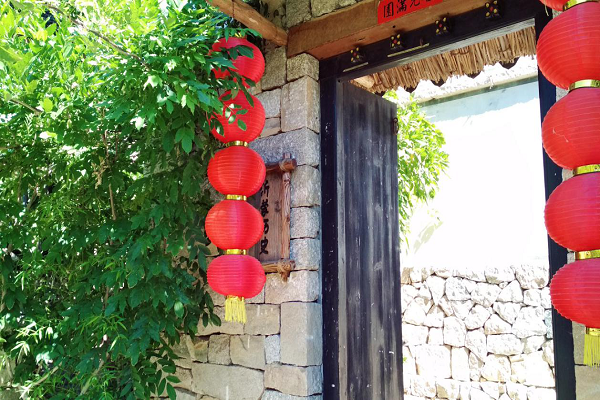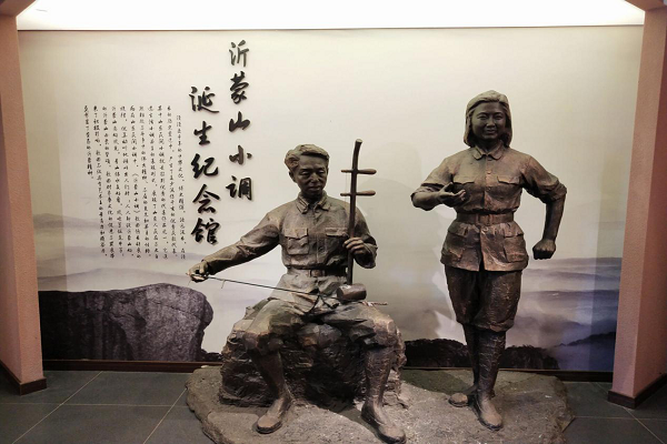 实践小组一行乘车来到天蒙山下,沿着山路台阶登上位于山腰处的沂蒙山小调博物馆。首先映入眼帘的是刻有“天蒙山”三个大字的景观石,远望山腰,展馆错落有致,穿过细长的石径就来到博物馆的第一部分——“沂蒙人家”馆。馆内布置充满浓郁的山东民俗气息,呈现一派平和的生活气息。由于到达时间较早,展馆中游客不多,为实践小组认真学习沂蒙山小调历史文化创造了比较良好的氛围。