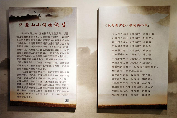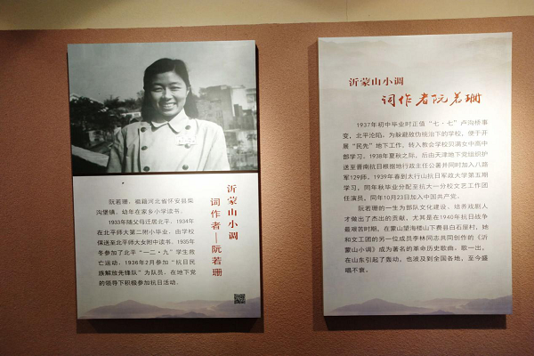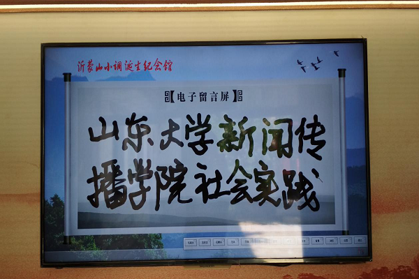 在沂蒙山小调纪念馆中,小组成员认真阅读了沂蒙山小调诞生和发展的历史过程,先后了解了李林、阮若珊等几位创作者的生平,并欣赏了他们的手稿。此外,实践小组还使用展馆内的电话型数字播放器,重温了不同版本的《沂蒙山小调》,之后在电子留言屏上写下了调研感受。