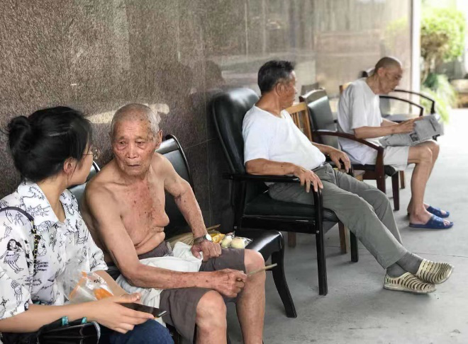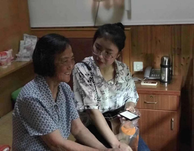 8月22日,山东大学新闻传播学院“老有所依”关于养老产业发展以及健康大数据应用情况调研团参观调查杭州市萧山区临浦镇敬老院,队员谭伊丽慰问在院老人,并进行采访调查。