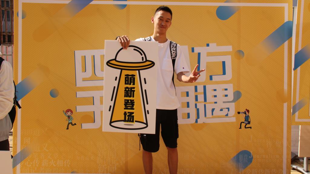 (新生在主题板拍照留念)