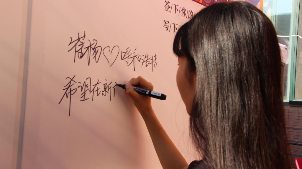 (新生在签名板签名并写下自己的心愿)
