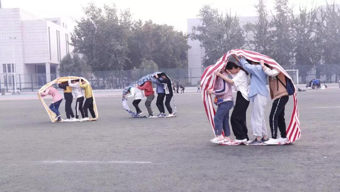 趣味接力赛的难度不小,先是四到五人绑脚走,然后一起像小仓鼠走滚轮一样踩着布料滚轮到终点,这个项目提高的不仅是同伴之间的默契度还有信任。踩气球更是火爆全场,嘭嘭嘭的气球爆炸声,点燃了同学们的热情,色彩斑斓的气球,映照出大家激昂的青春。