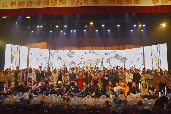 11月30日晚,山东大学新闻传播学院2019年怦然“新”动迎新晚会在中心校区音乐厅成功举办,本场晚会宣传语为“薪火似月明,韶华当放歌”。山东大学新闻传播学院党委书记王德胜和学院全体师生欢聚一堂,共赏晚会。