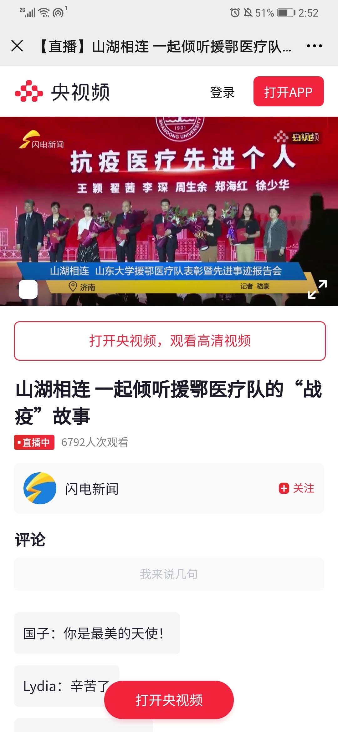 此次山东大学援鄂医疗队表彰暨先进事迹报告会,让学生们跟随医疗英雄们回忆那场抗疫阻击战,在一段段感人至深的医疗故事中感受医者担当,无论是义无反顾的勇者气魄,还是冲锋在前的党员精神,或是医患心连心的动人情谊,都让我们体会到家国大爱,英雄就在身边!