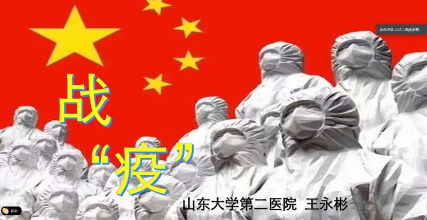 首先,王永彬医生为同学们分享了自己的抗疫经历和感受。新冠疫情爆发伊始,作为中共预备党员的他主动请缨,立下“战书”。随后,在大年初一的晚上,他就随山东医疗队伍从济南飞赴武汉。在湖北一线,他24小时待命,争分夺秒地救助病人。最终不辱使命,携全体队员安全归来。