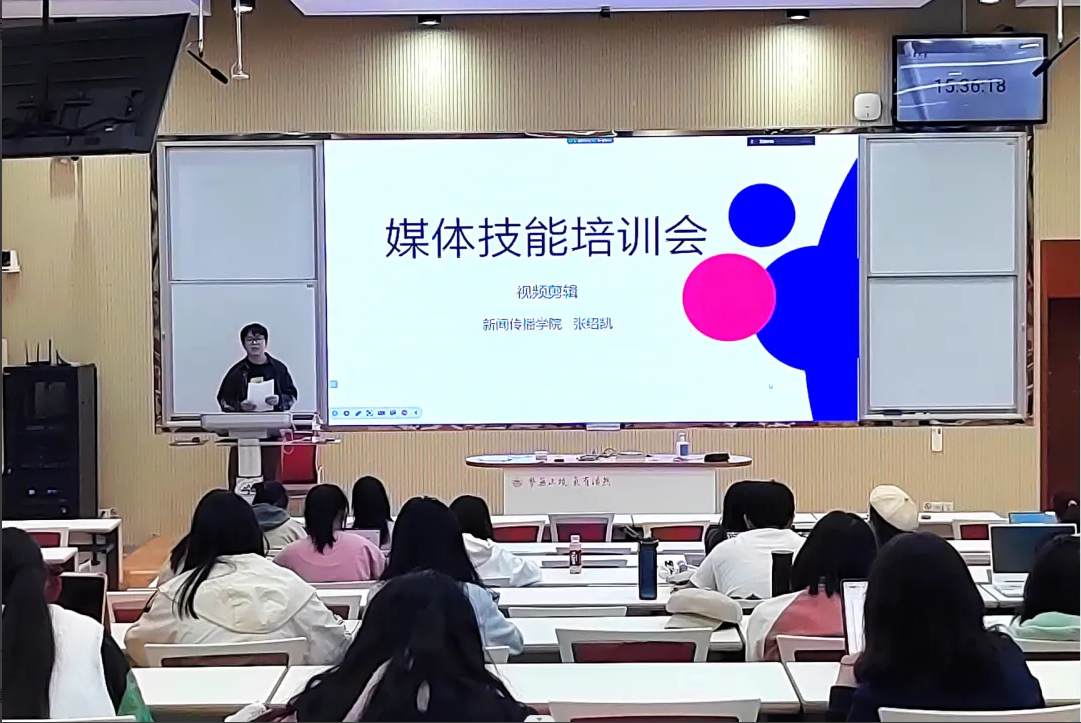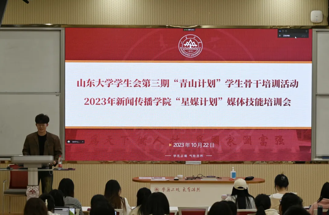10月22日,新闻传播学院在电教北楼102教室举办“星媒计划:媒体技能培训会”,来自一校三地20个学院的200余名学生通过线下和线上相结合的方式参加培训。